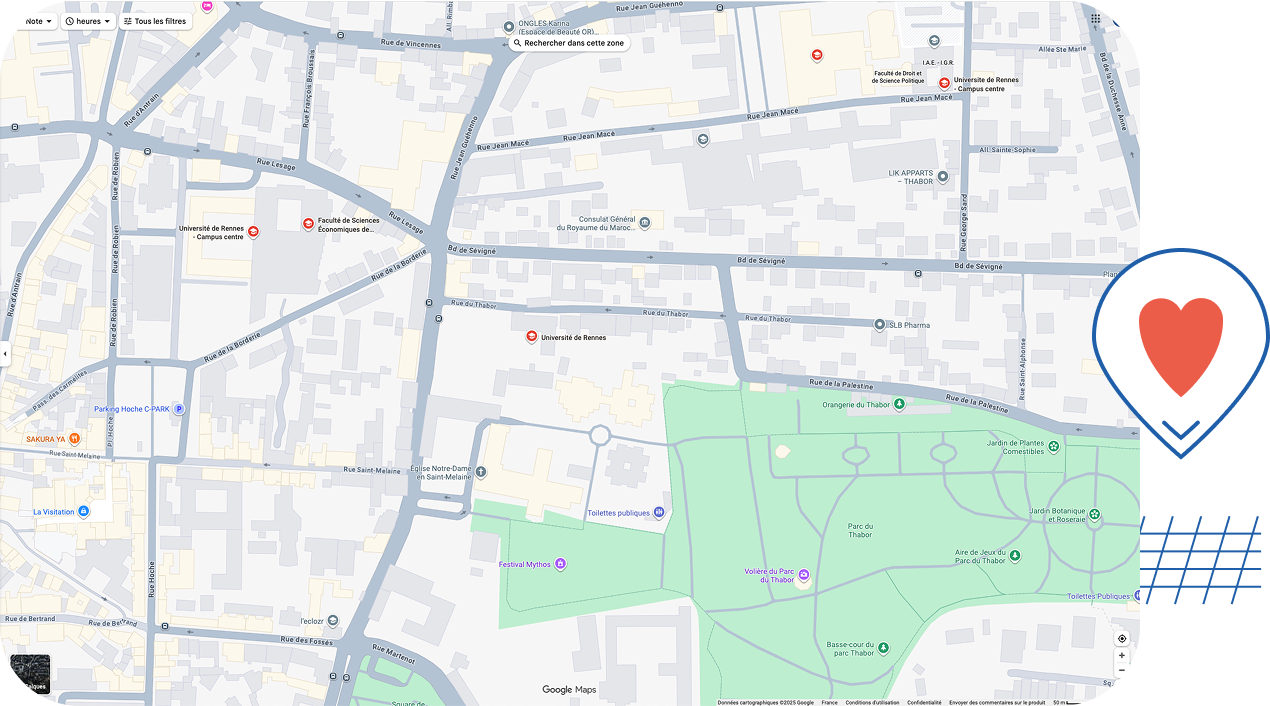 By metro : Cleunay station – Lines B (20min walk)